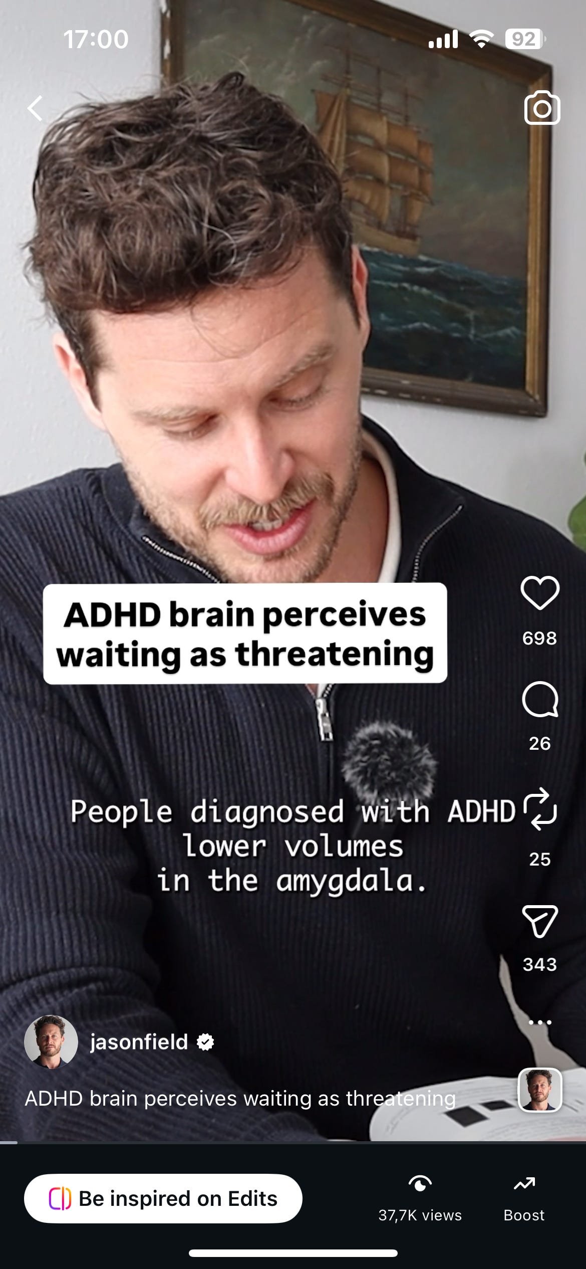 People with ADHD experience increased connectivity between the amygdala and reward areas of the brain, a circumstance that makes waiting, i.e. momentarily forgoing a perceived reward, as threatening in the brain as what is experienced in healthy controls by fear-eliciting negative stimuli.